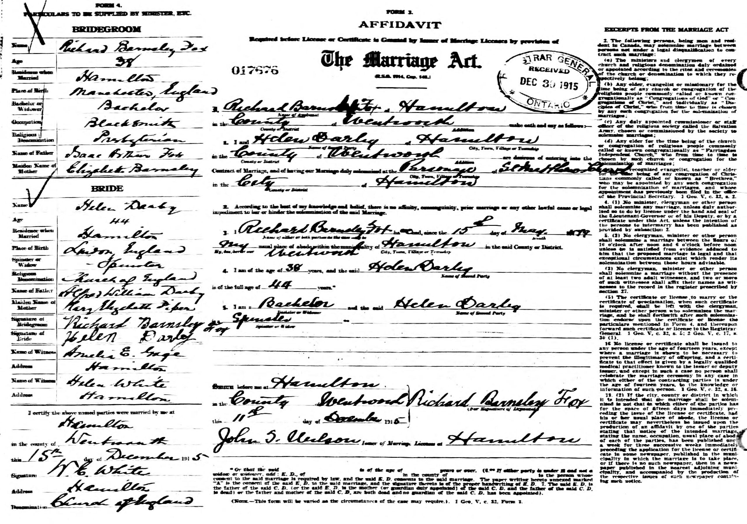November 30, 1892 Hamilton, Ontario, Canada - 1955 Dunnville, On Ontario, Canada Births, 1858-1913 for Maud Fox